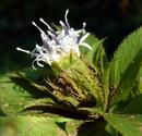 白い細い花びらと、尖った苞葉が印象的です。 葉の縁にはギザギザの鋸歯があります。